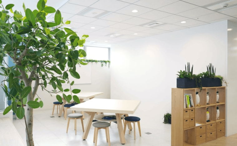 - オフィスの一角にある、まるでカフェテリアのようなMTGスペース。一人で集中して作業したい時や、ランチ時にも使えます。